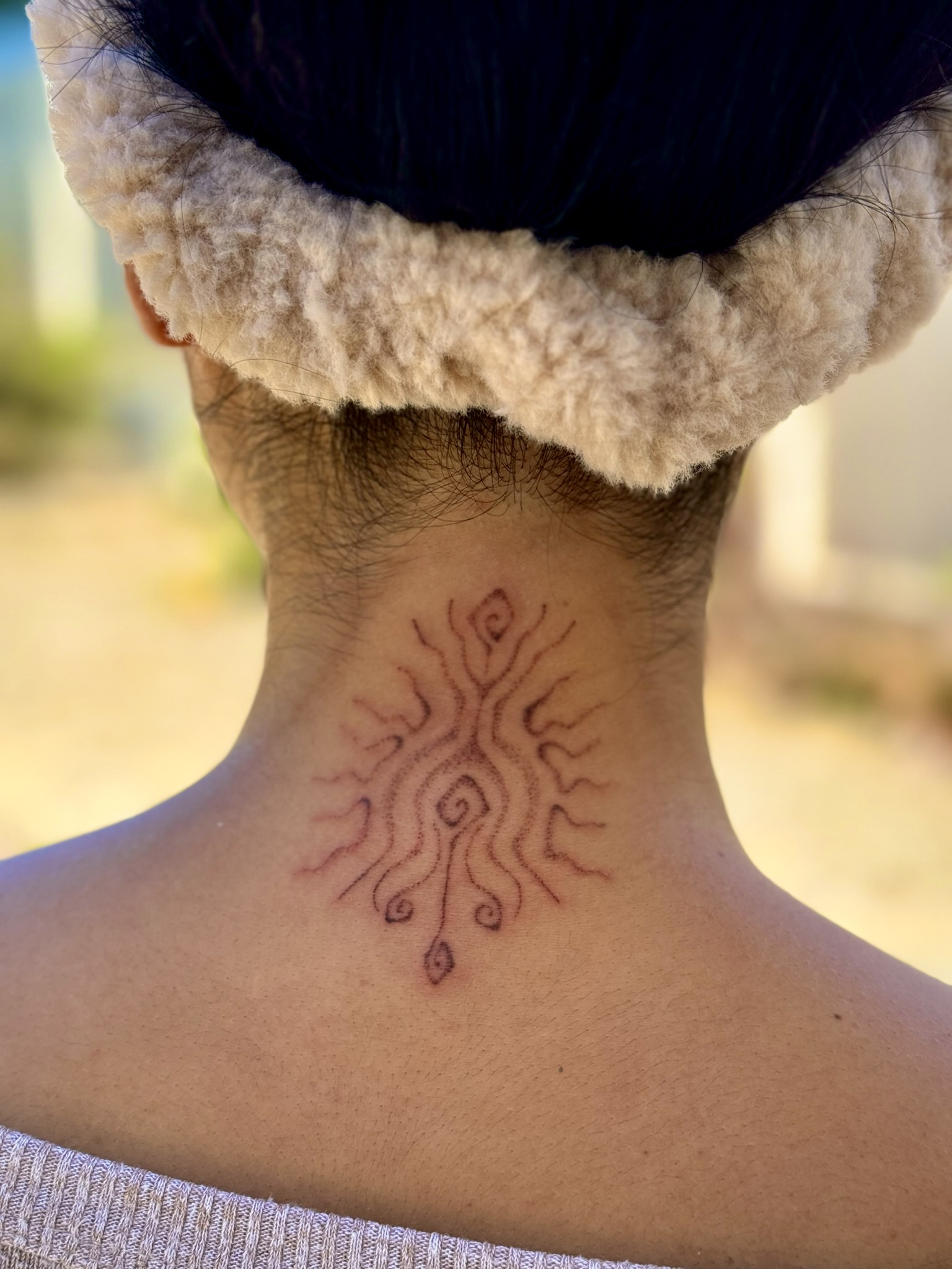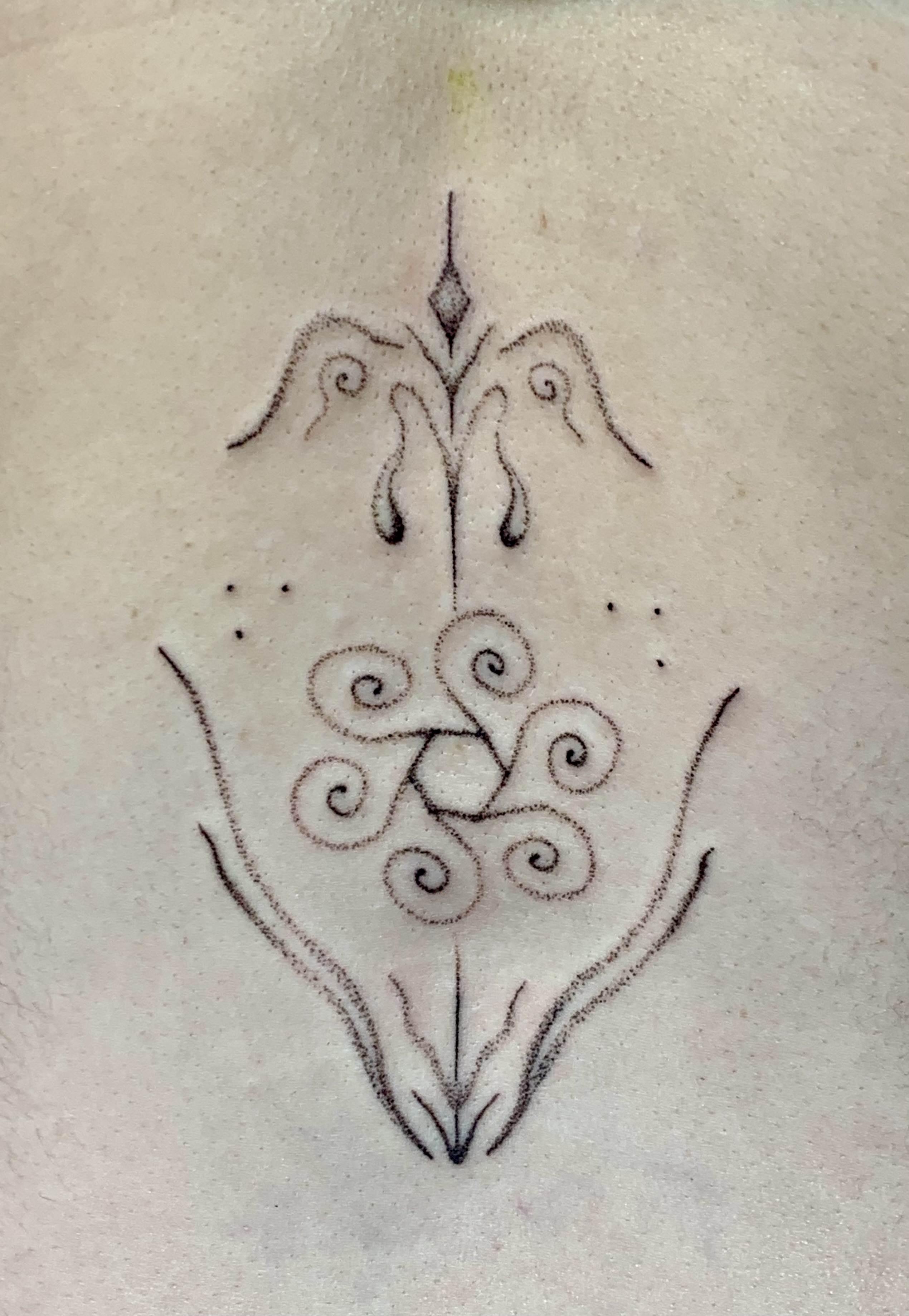 Mythopoetic Tatu is an offering of guided storywork and ceremonial tatu held over 2+ sessions. During the storywork session, we unveil your body-myth and the memories, feelings, and entanglements that shape it. Guided by your myth, an intuitive design is co-created. We then hold a ceremonial tatu session over a half-day to invoke your story through portals of poetry and ink, accompanied by a custom herbal blend. Integration storywork sessions are optional follow-up to support your process towards mythic embodiment.