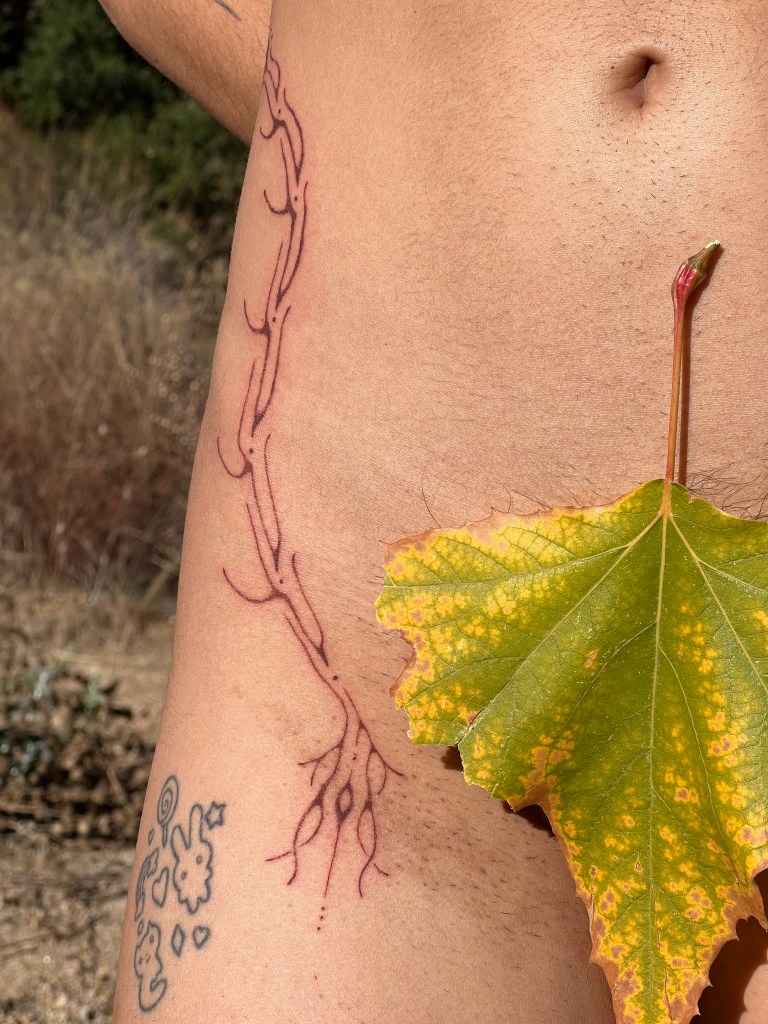 “I really appreciated my time with Haven. The ceremonial aspect of my session is something new to me, and I felt very grateful to partake in it. I can tell they’re trauma informed and understand how tatu is an embodied practice. I was able to rest when needed and they took my allergies and marginalizations in mind. Each day I’m more excited about being tattooed with “radiating love.” I feel more sensual and at ease in my own skin, and at peace with myself. I felt comfortable to be in my body for the duration of our session, and it meant a lot to explicitly prioritize COVID safety measures.”