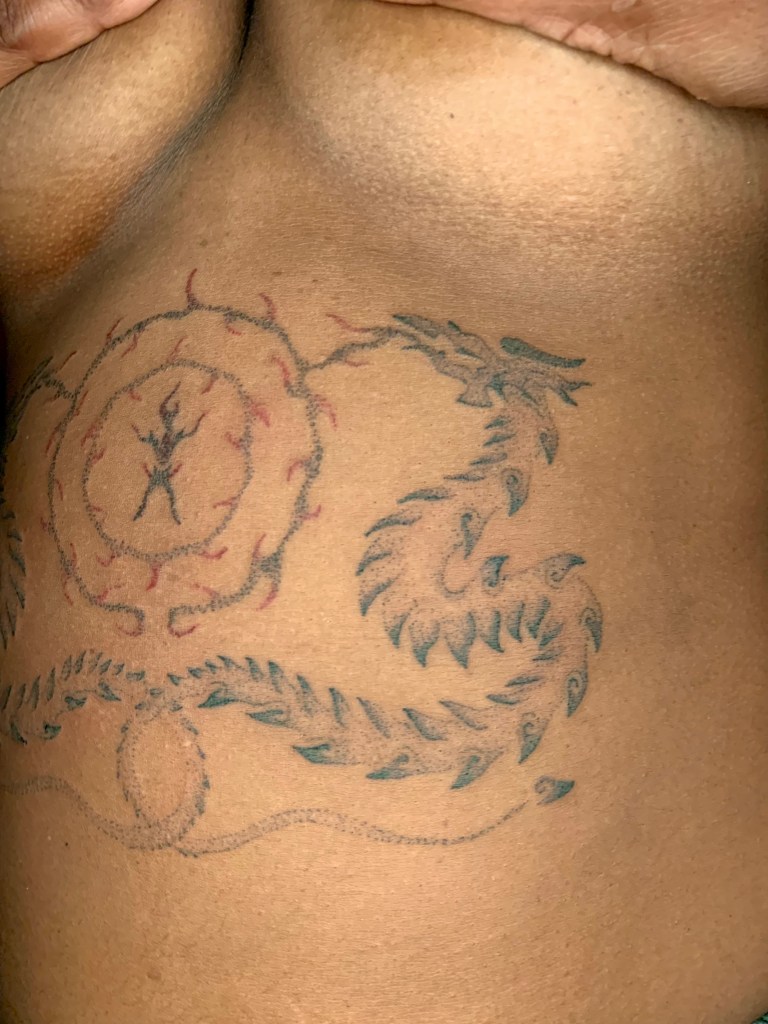 “I really appreciated my time with Haven. I can tell they’re trauma informed and understand how being tattooed and tatu is an embodied practice. The ceremonial aspect of my session is something new to me, and I felt very grateful to partake in it. Overall, I was able to rest as much as I needed, and they took my allergies and my marginalizations in mind throughout our time together.