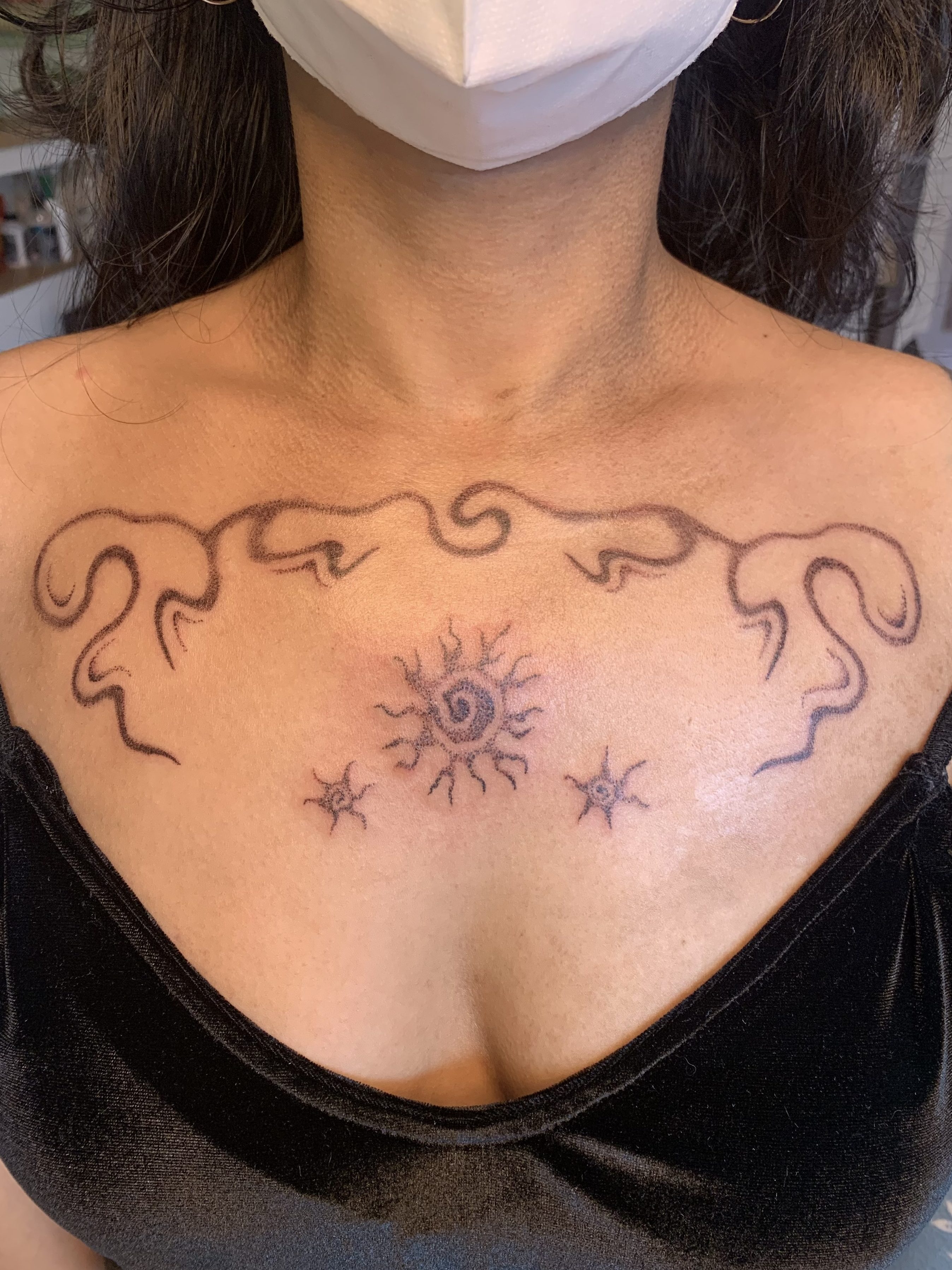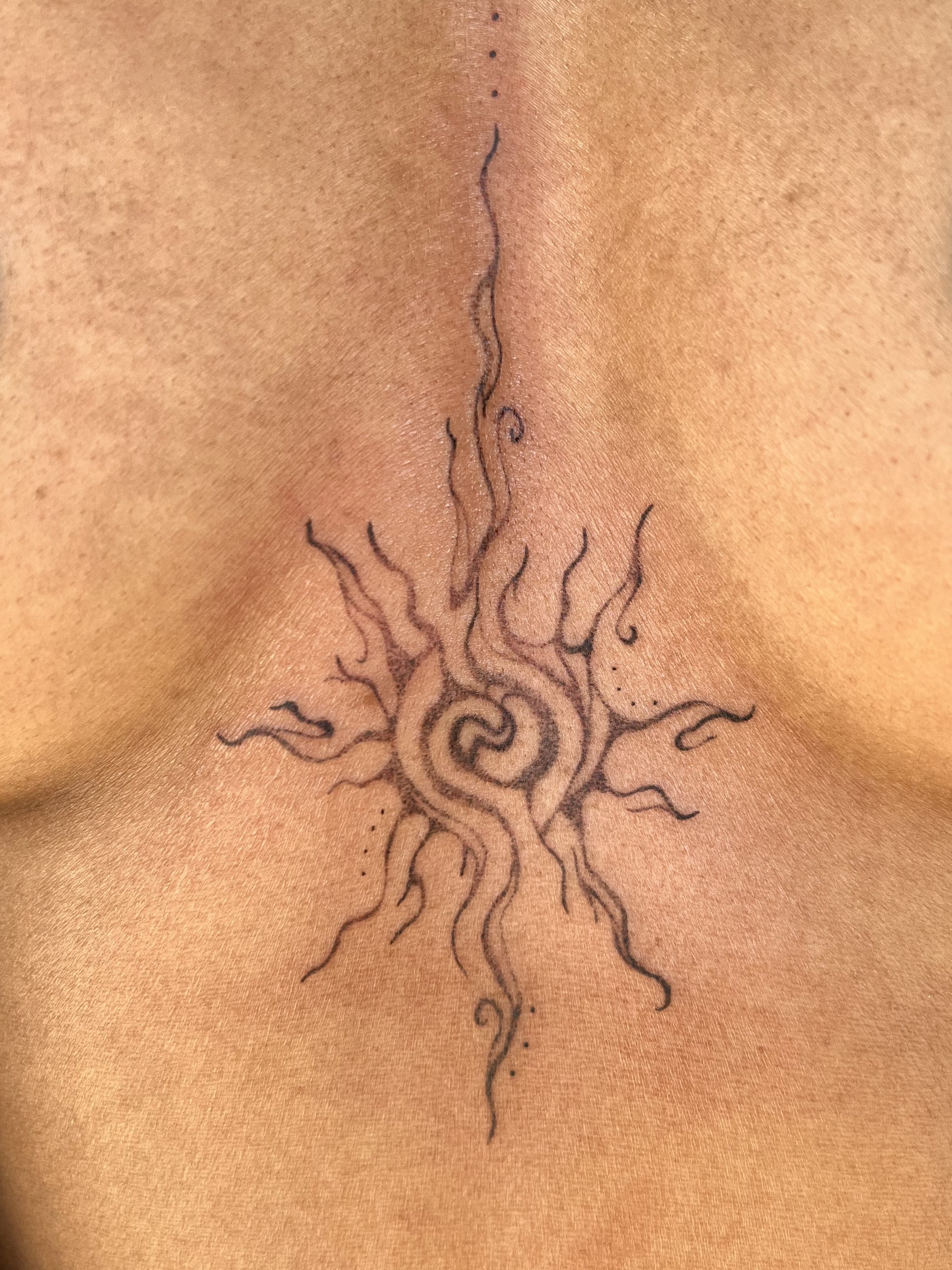 Each day I’m more excited about being tattooed with “radiating love.” The placement feels very intentional and I feel at peace within myself. I feel more sensual and at ease in my own skin. I’ve found myself reflecting upon this session, though it’s been a few weeks. I felt comfortable to be in my body for those few hours, and it meant a lot to explicitly prioritize COVID safety measures.”