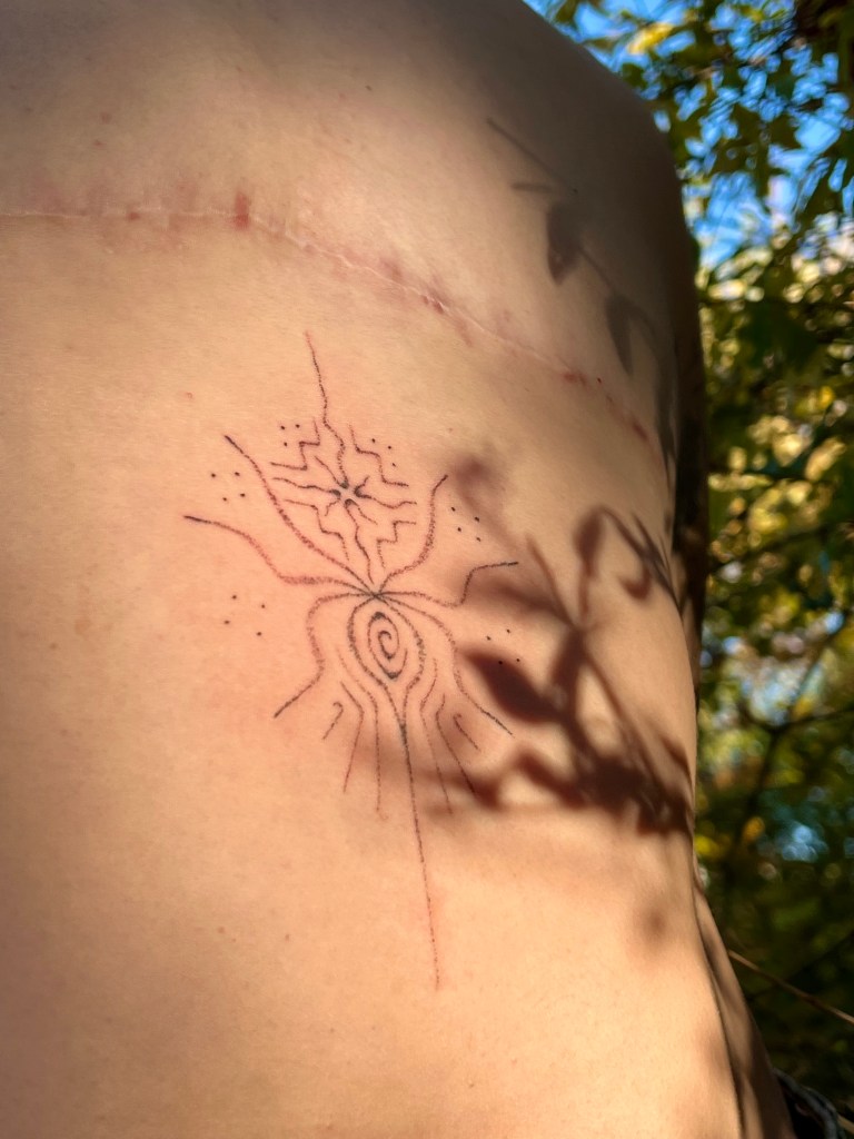 I felt so grounded and held through the process from the storywork to the tattoo session itself, and haven embodied/brought forth a relationality that really reinforced the loving intentions, the trust, the soft intimacy of sacred ritual, connection (to plant kin, to lineage, self, the collective). They created a space where I felt welcomed in my wholeness/fullness, the entirety of my bodymindspirit, and that was so appreciated/special as a brown disabled neurodivergent queer femme.